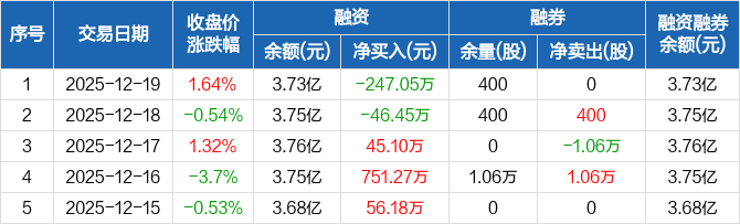 海达股份:融资净偿还247.05万元,融资余额3.73亿元(12-19)
