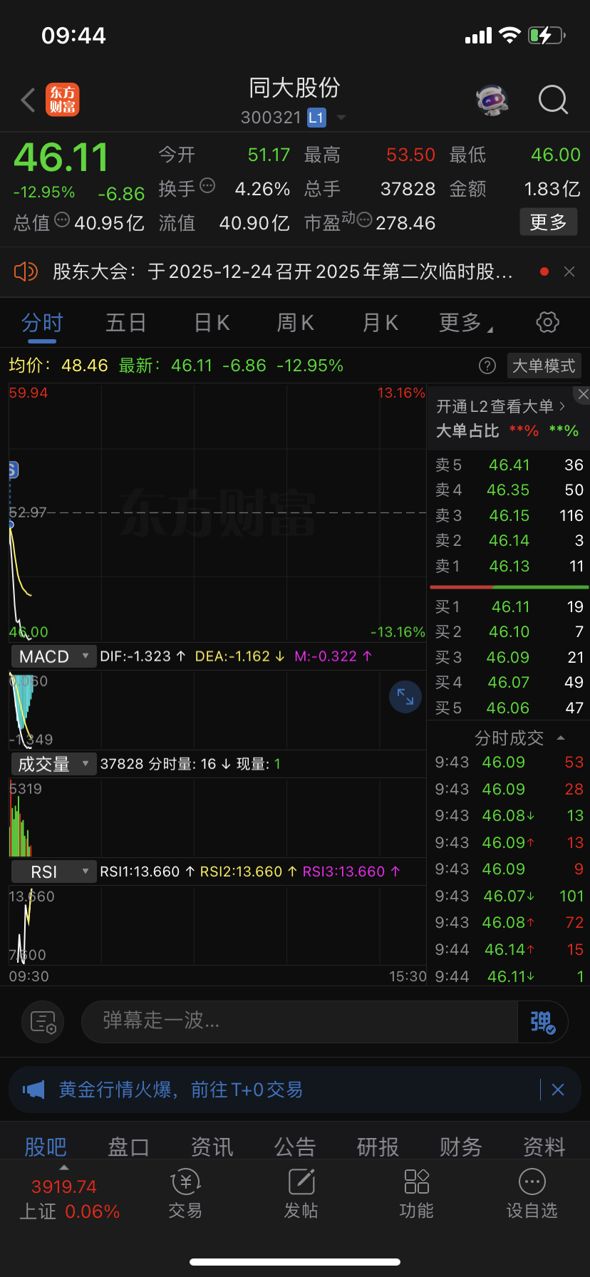 $同大股份(SZ300321)$ 吓到了