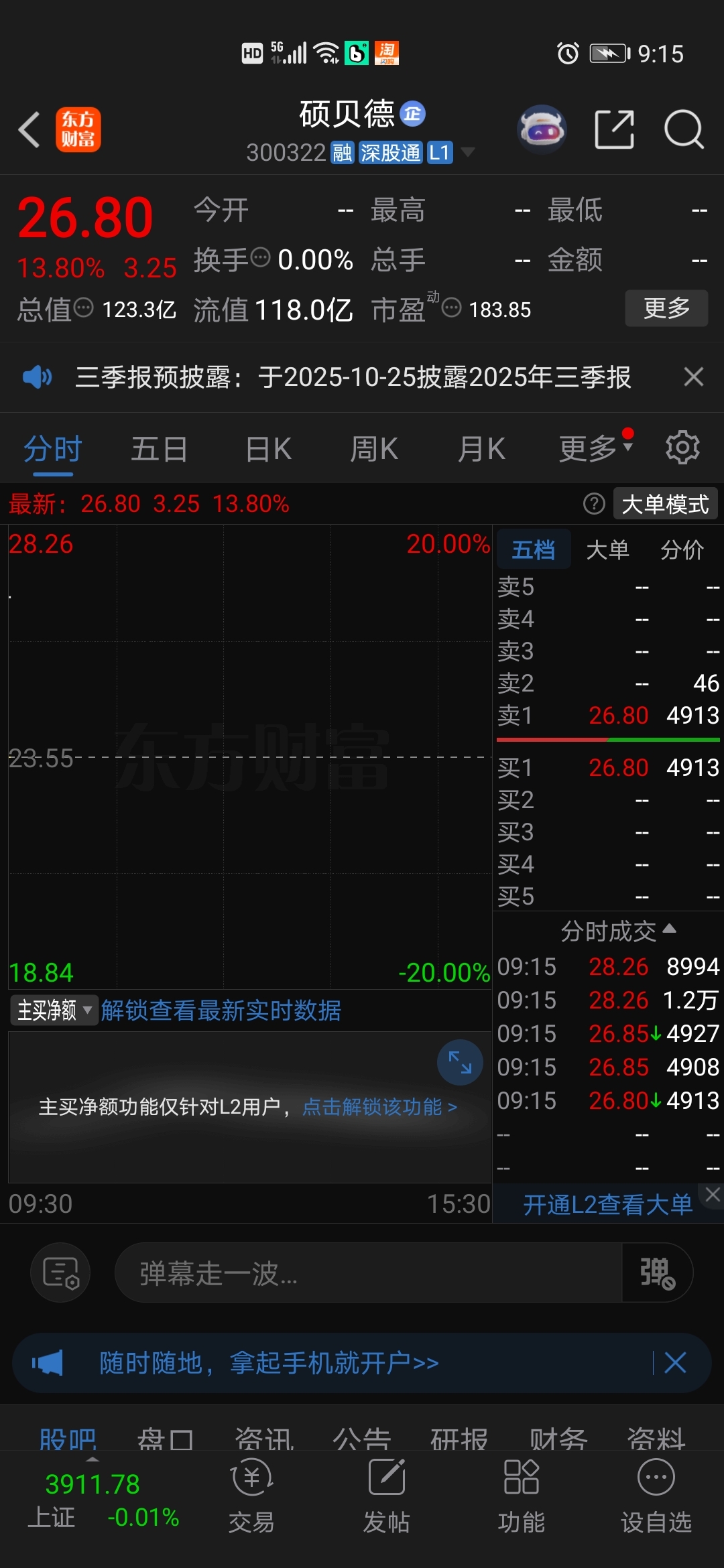 $硕贝德(SZ300322)$ 要是开盘有能稳住这13个点,马上开溜
