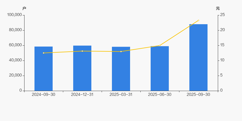 2024年9月30日至今,公司股东户数显著大幅增长,区间涨幅达50.59%。2024年9月30日至2025年9月30日区间股价上涨86.23%。