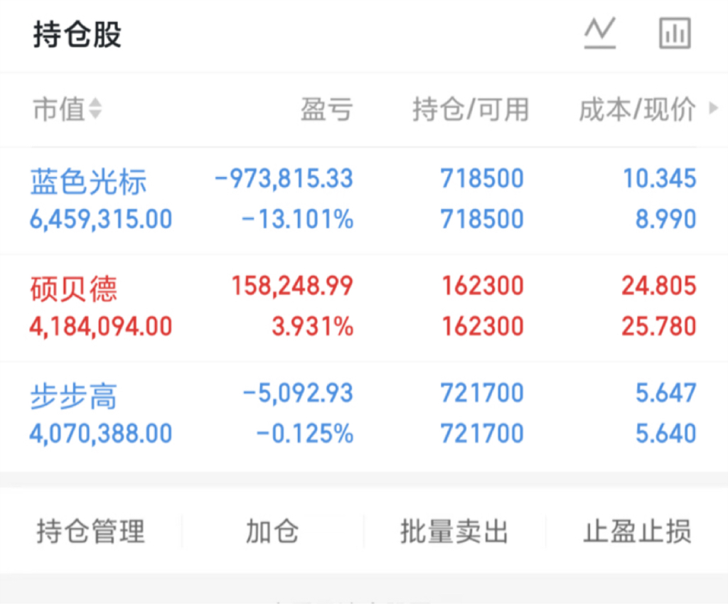 4、昨天早上新仓硕贝德300322,今天红盘出货。