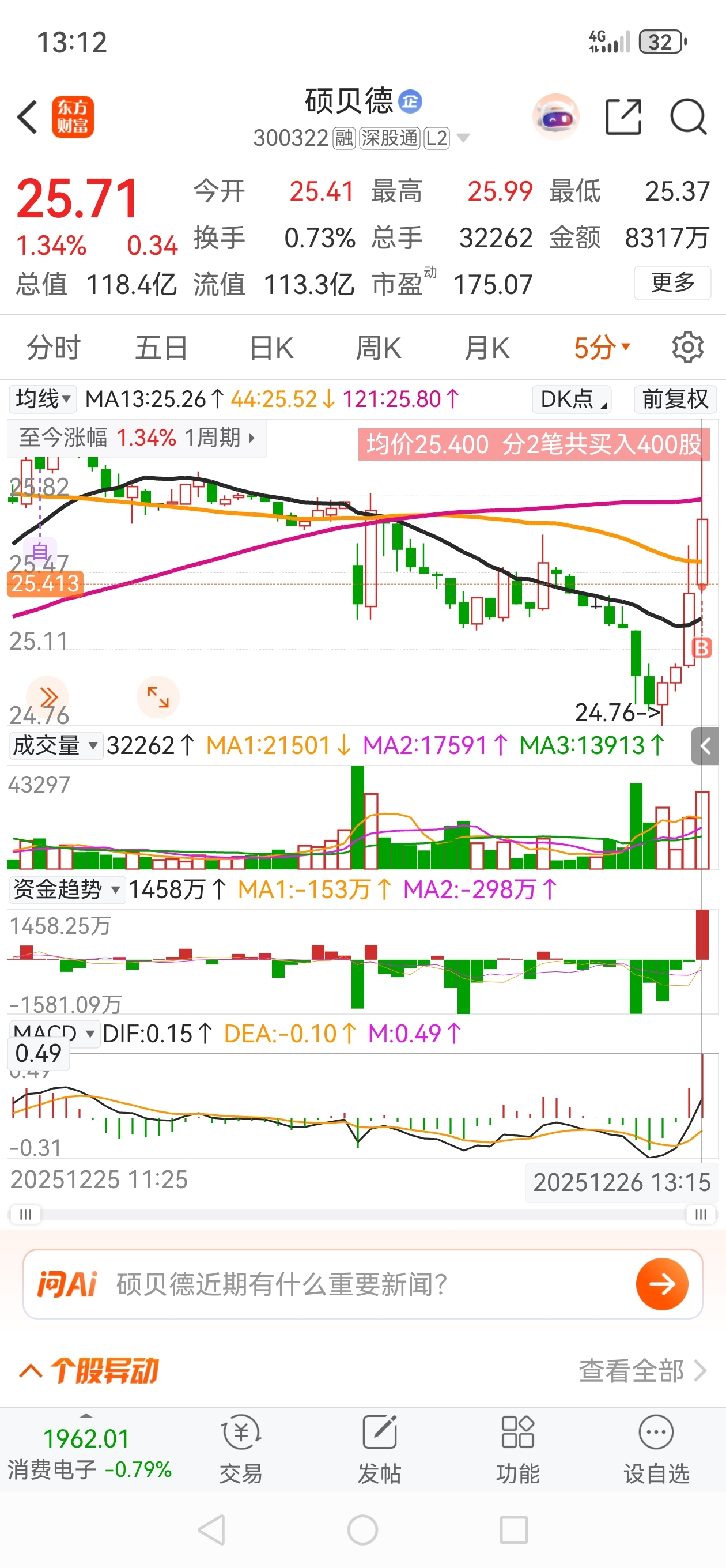 $硕贝德(SZ300322)$ 买了。这个可以了。没吵过。其他都太高了。