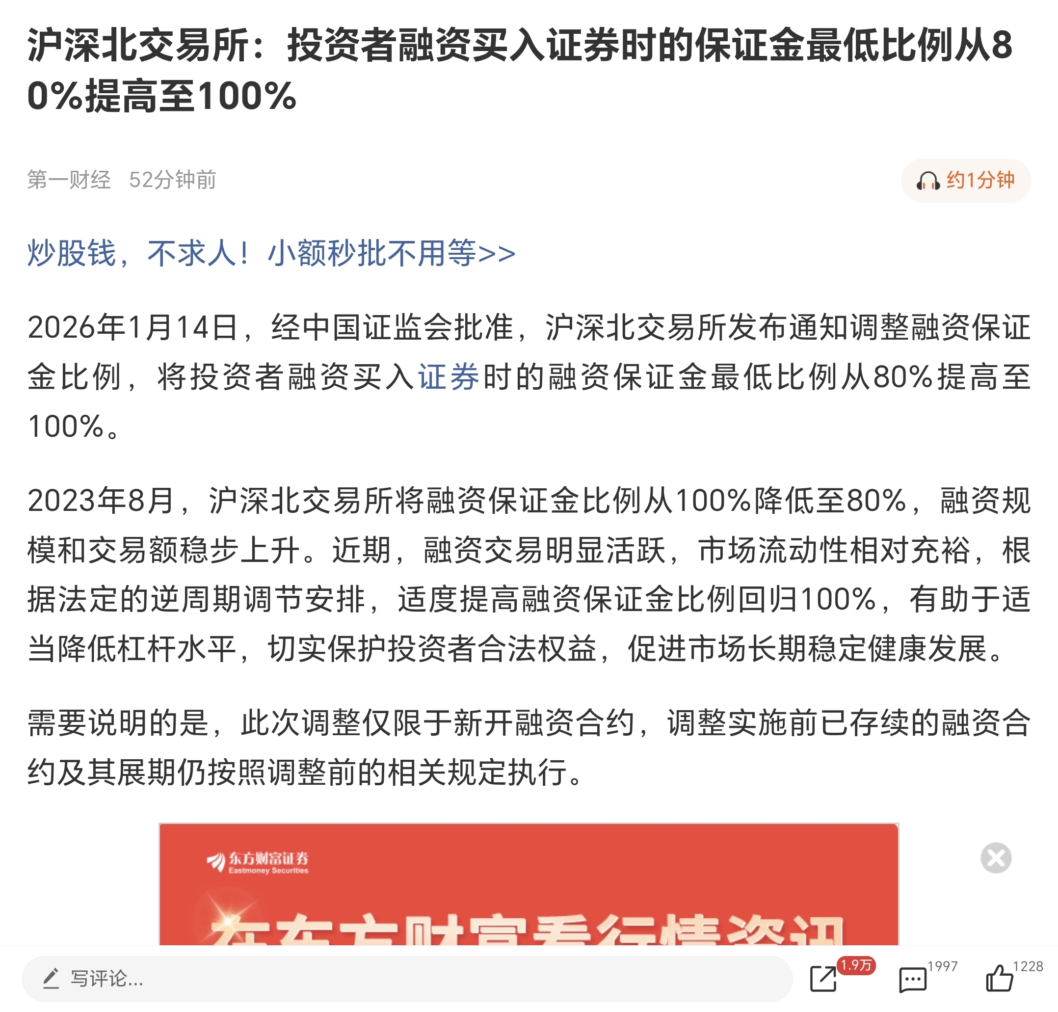 $硕贝德(SZ300322)$ 这个消息造成融资盘跑路,大盘下跌。其实这对硕贝德是利好,用信用账户买硕贝德的都知道,他的折算率为零。你买一千万,也没法用他融资。