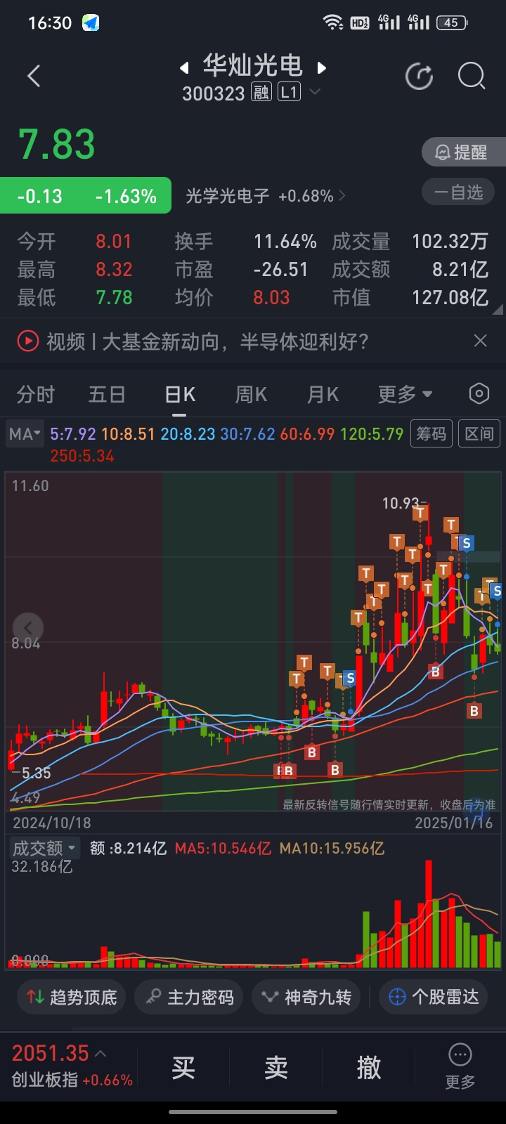 $华灿光电(SZ300323)$ 走了,短期不到7附近不来了,
