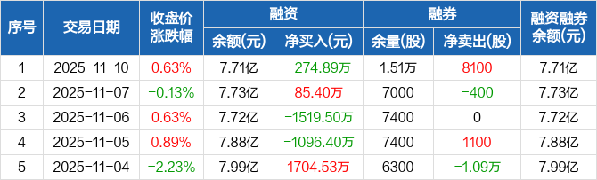 华灿光电:融资净偿还274.89万元,融资余额7.71亿元(11-10)