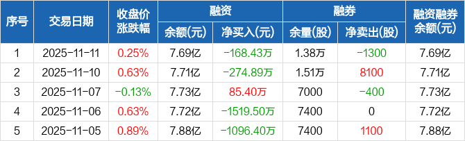 华灿光电:融资净偿还168.43万元,融资余额7.69亿元(11-11)