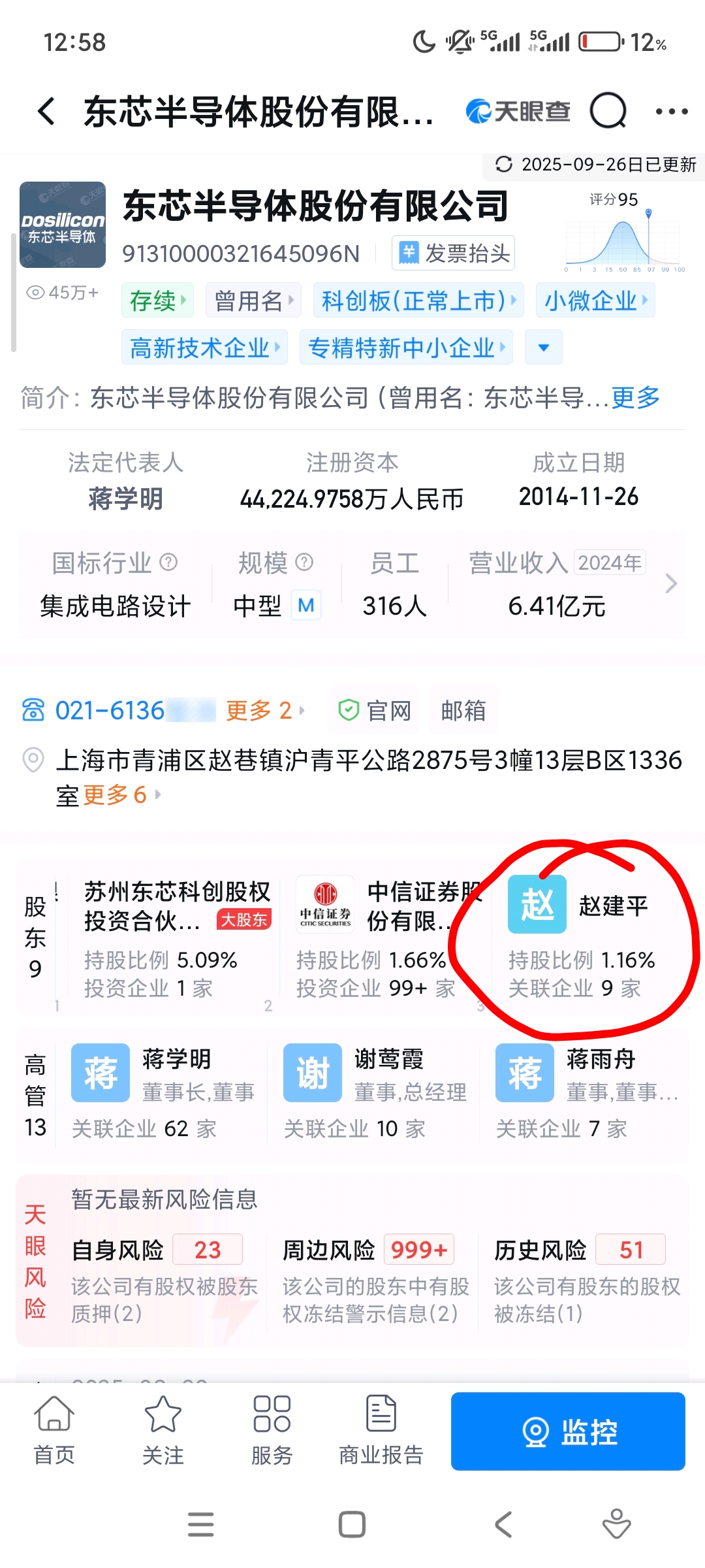就找到了这么多,同一个人,曲速的董事!东芯半导体和利扬芯片的股东!