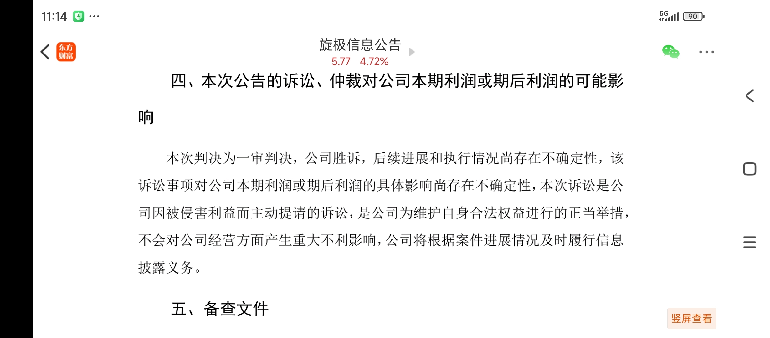 $旋极信息(SZ300324)$ 旋极打赢官司,九千万元回来