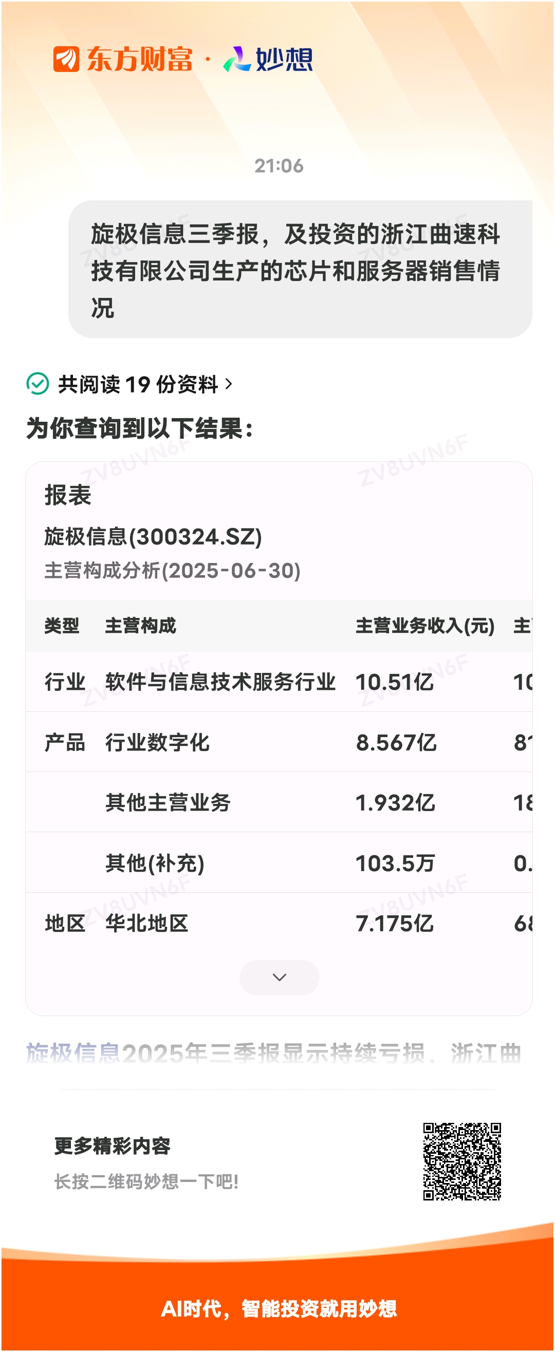 #@妙想,你怎么看?# 妙想一下:旋极信息三季报,及投资的浙江曲速科技有限公司生产的芯片和服务器销售情况