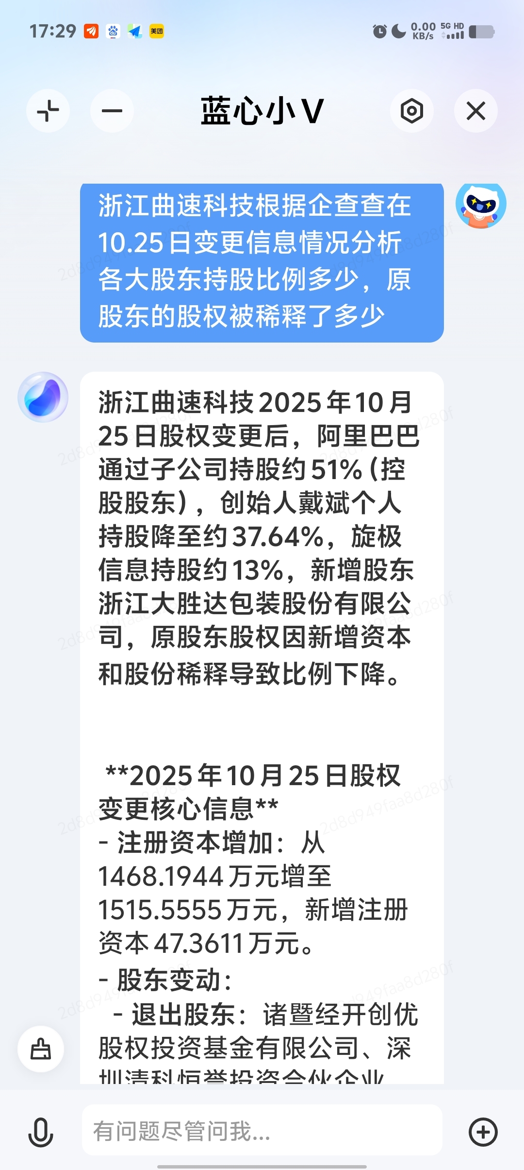 玄机信息投资的曲速科技股权被稀释了,只有13%了