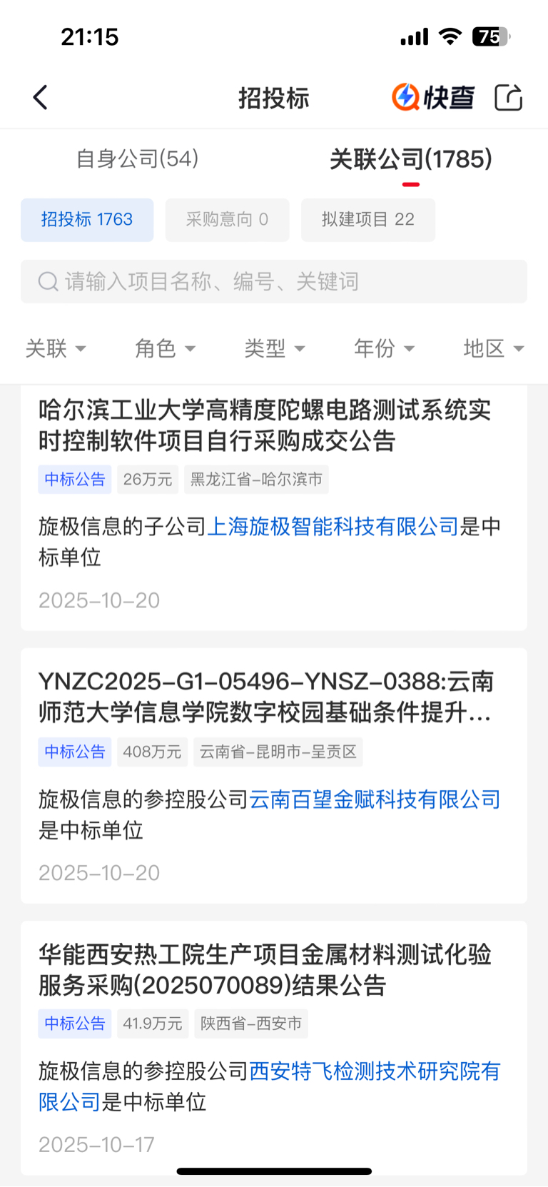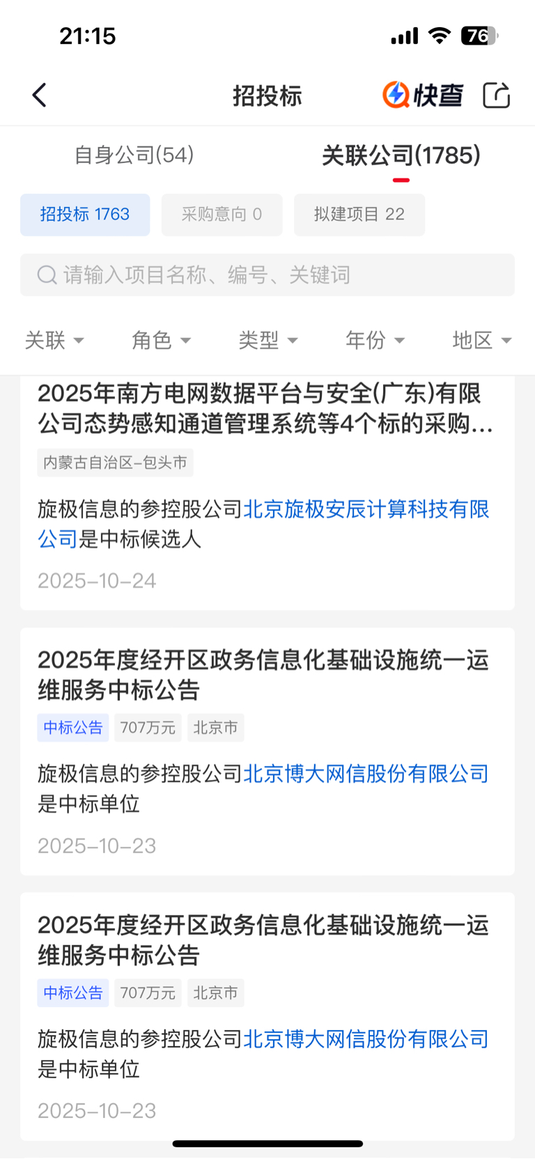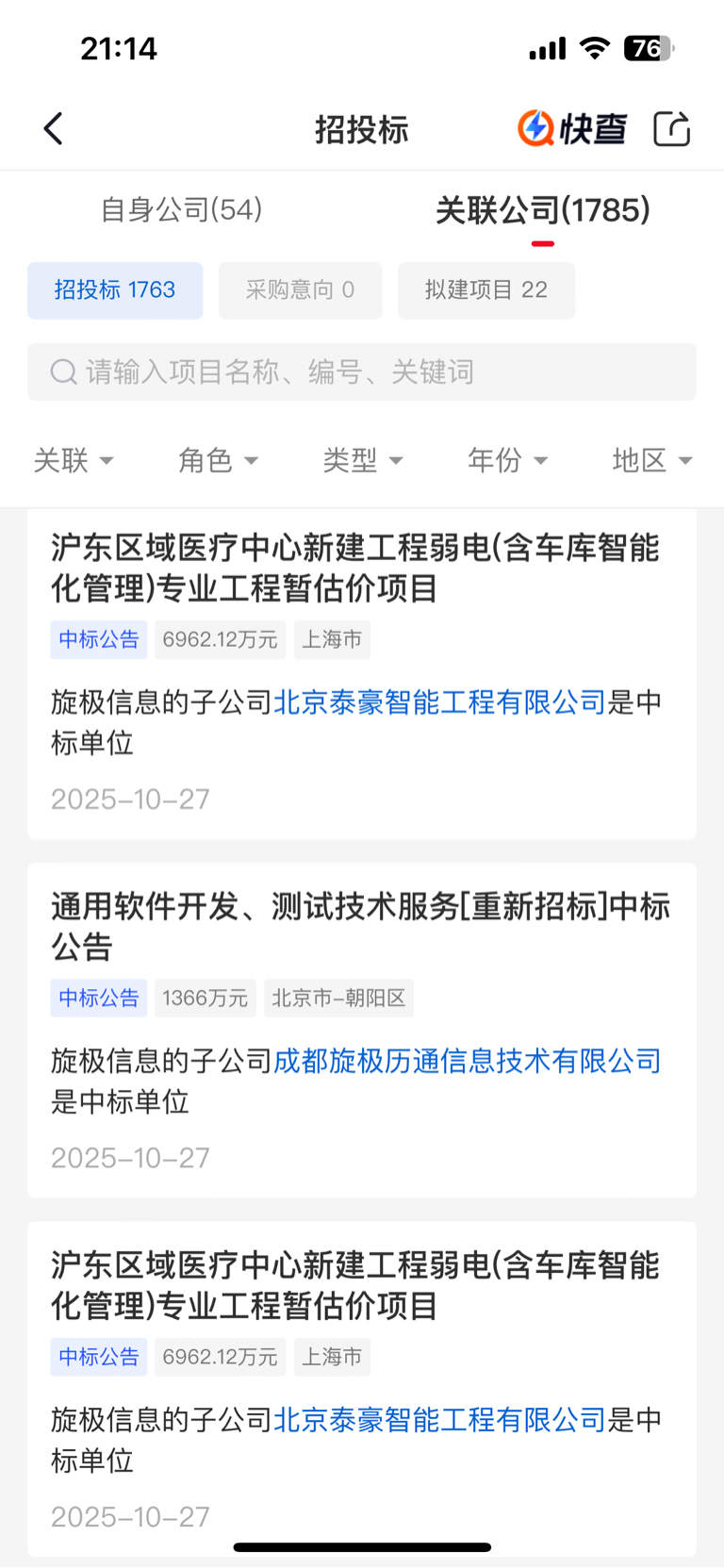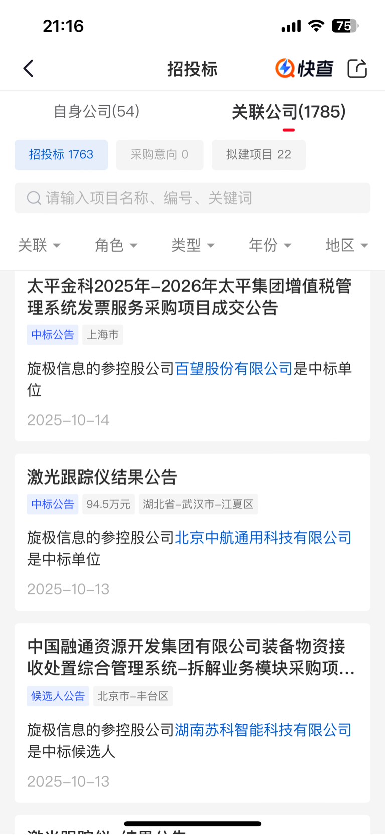 最近查了下旋极子分公司的中标信息,合计一年都17个亿了,包括数据中心,芯片采购,