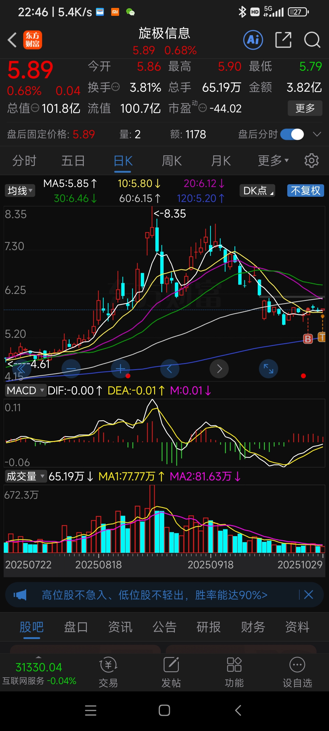 $旋极信息(SZ300324)$ 不是涨就是跌,先卖了再说