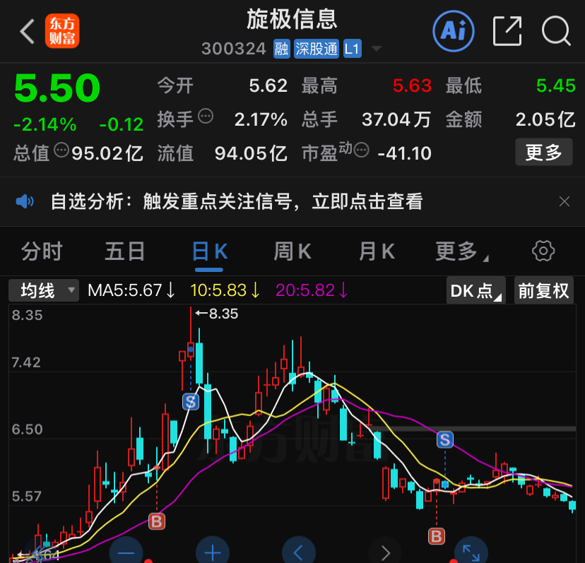 $旋极信息(SZ300324)$ 一直关注你,怕你起飞。哎,你怎么走成这样啊