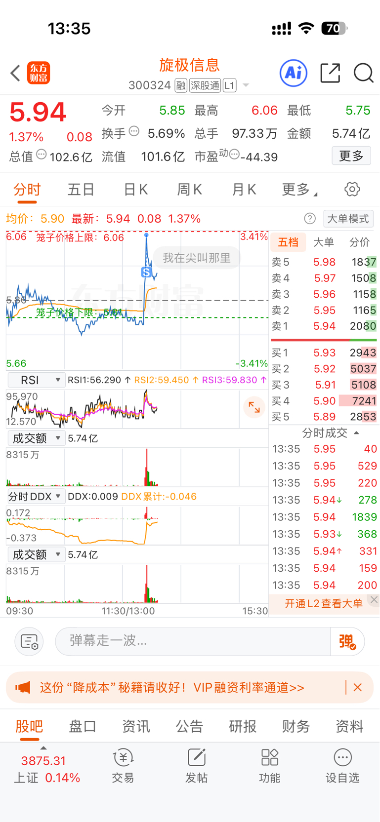 $旋极信息(SZ300324)$ 6.06逃的太少了