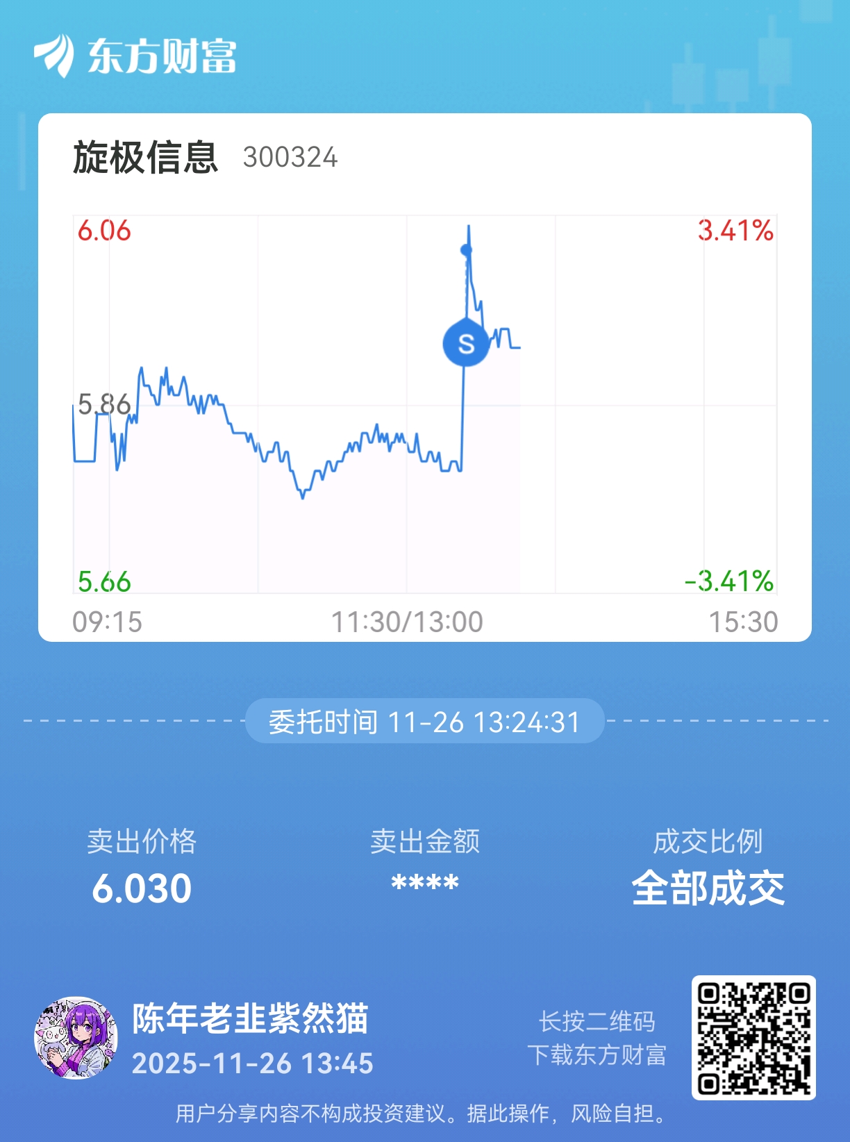温馨提示: 1.根据《证券法》规定,禁止编造、传播虚假信息或者误导性信息,扰乱证券市场;2.用户在本社区发表的所有资料、言论等仅代表个人观点,与本网站立场无关,不对您构成任何投资建议。用户应基于自己的独立判断,自行决定证券投资并承担相应风险。《东方财富社区管理规定》