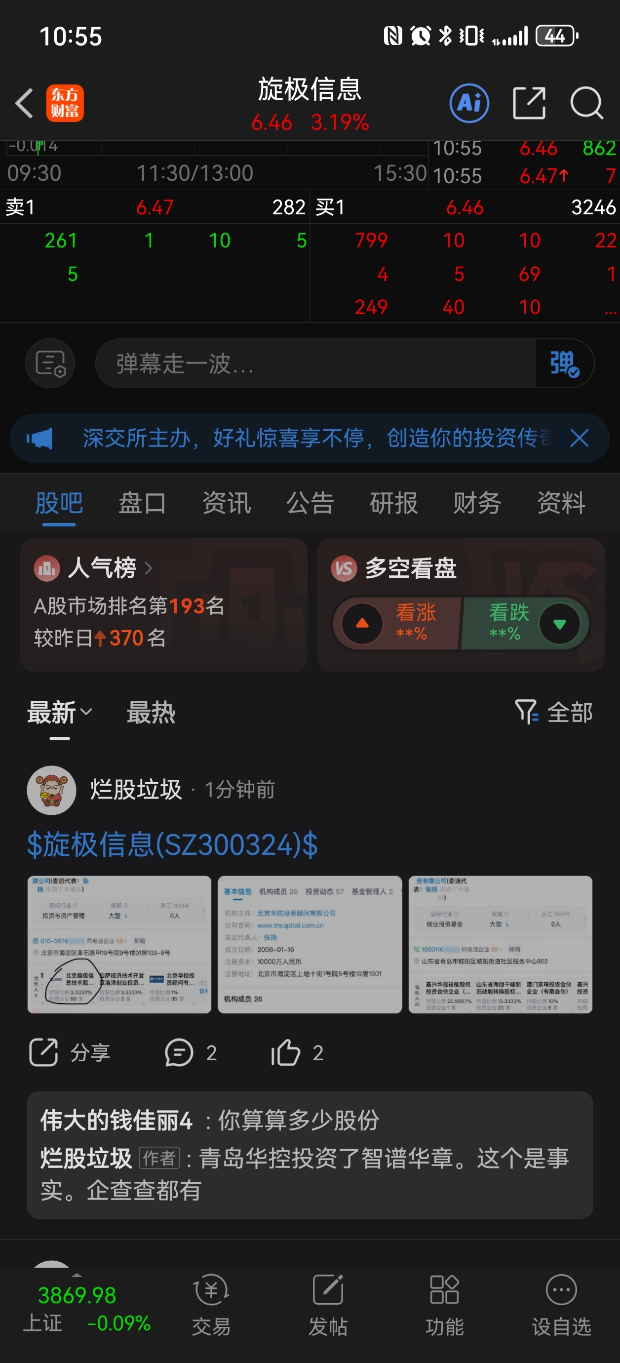 温馨提示: 1.根据《证券法》规定,禁止编造、传播虚假信息或者误导性信息,扰乱证券市场;2.用户在本社区发表的所有资料、言论等仅代表个人观点,与本网站立场无关,不对您构成任何投资建议。用户应基于自己的独立判断,自行决定证券投资并承担相应风险。《东方财富社区管理规定》