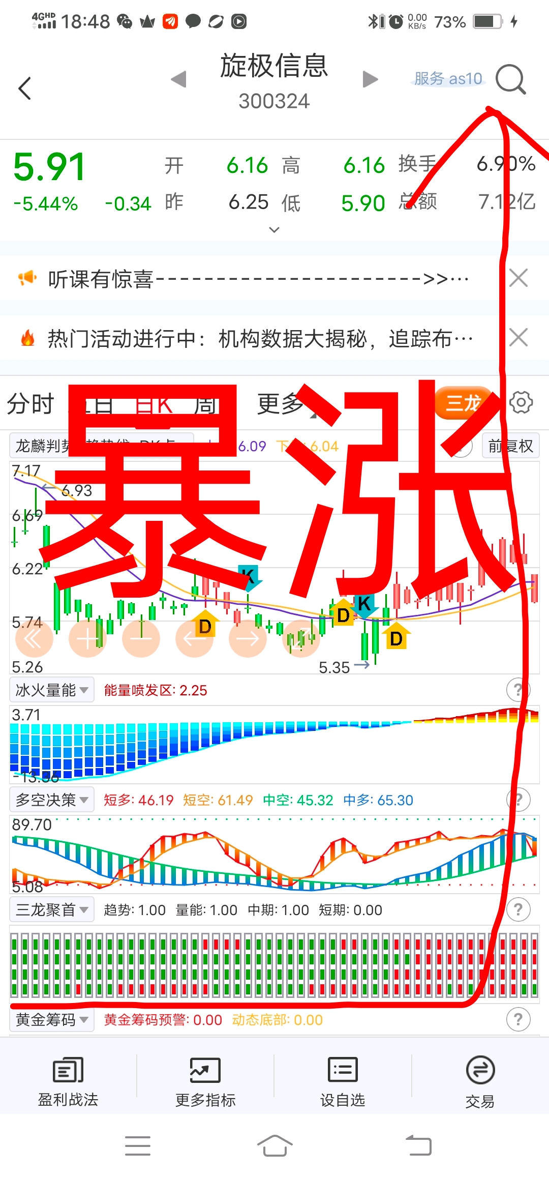 洗盘而已后面要有大动作,大家记住明天低开可以先买半仓,如果在低开那就直接全仓,万