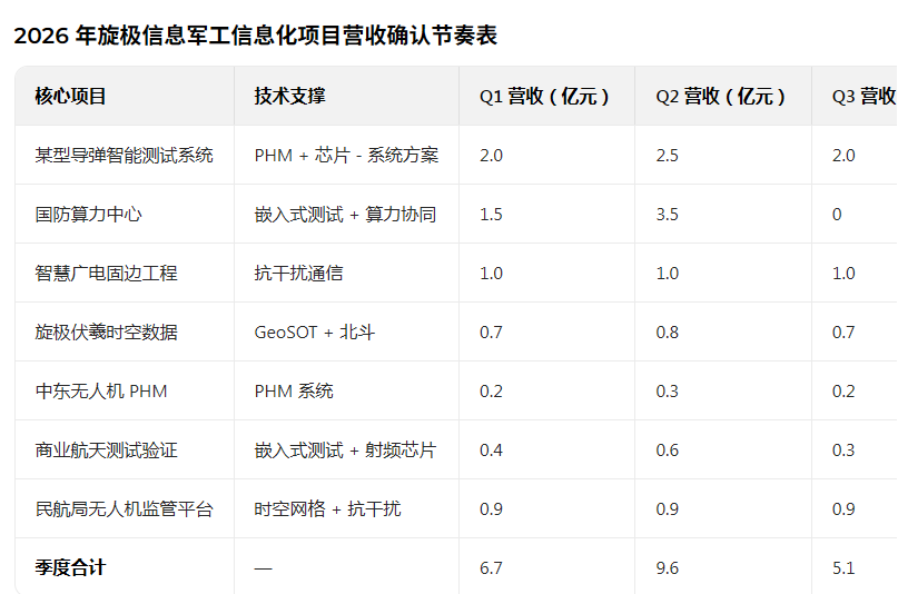 旋极核心业务:军工信息化、国防算力、AI 芯片、商业航天、智慧税务、低空经济等领域,核心项目多处于2026 年交付与拓展期