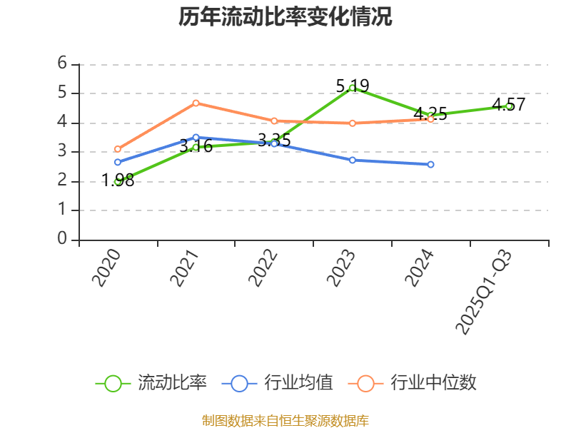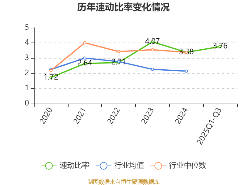 2025年前三季度,公司流动比率为4.57,速动比率为3.76。