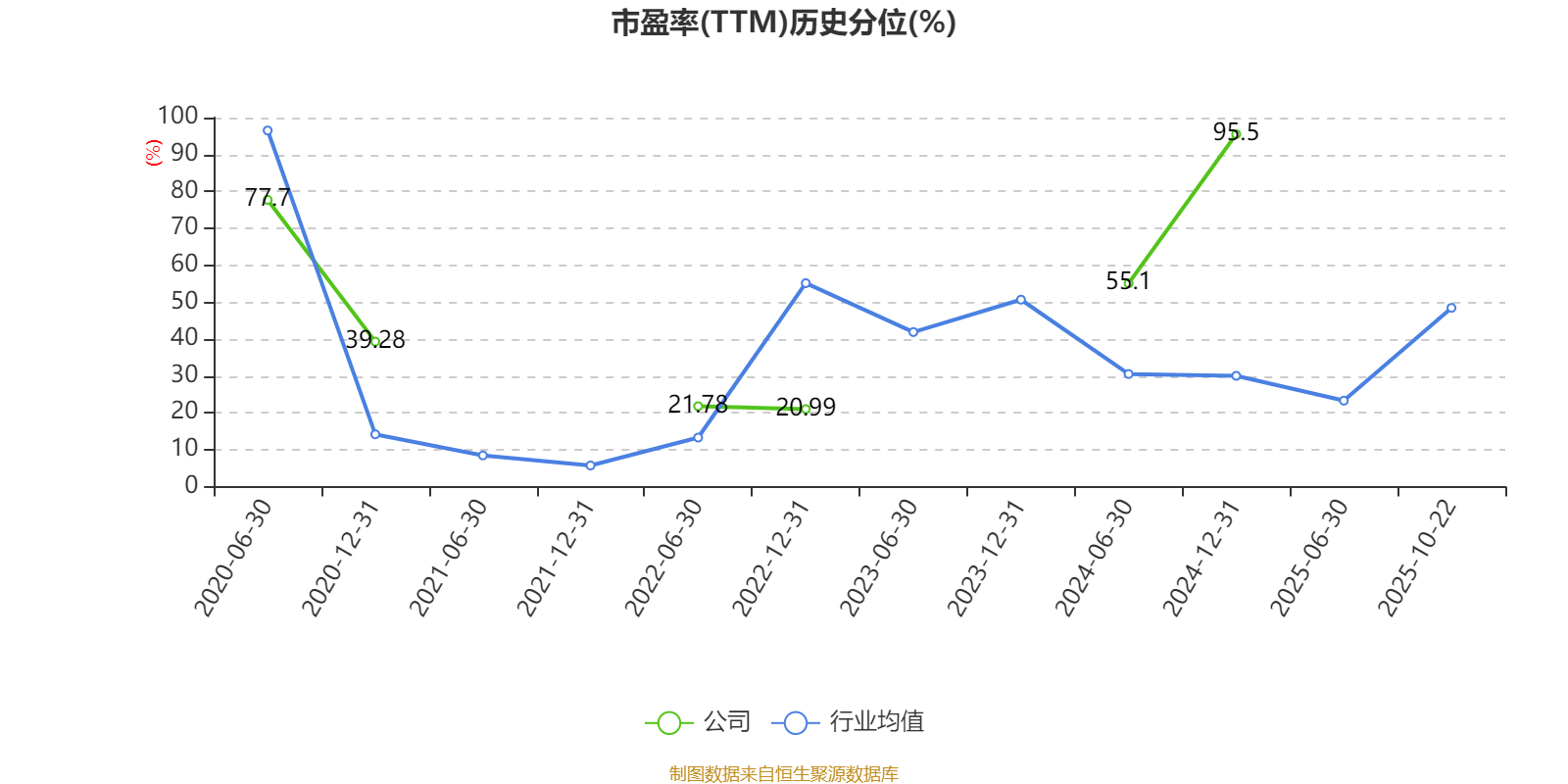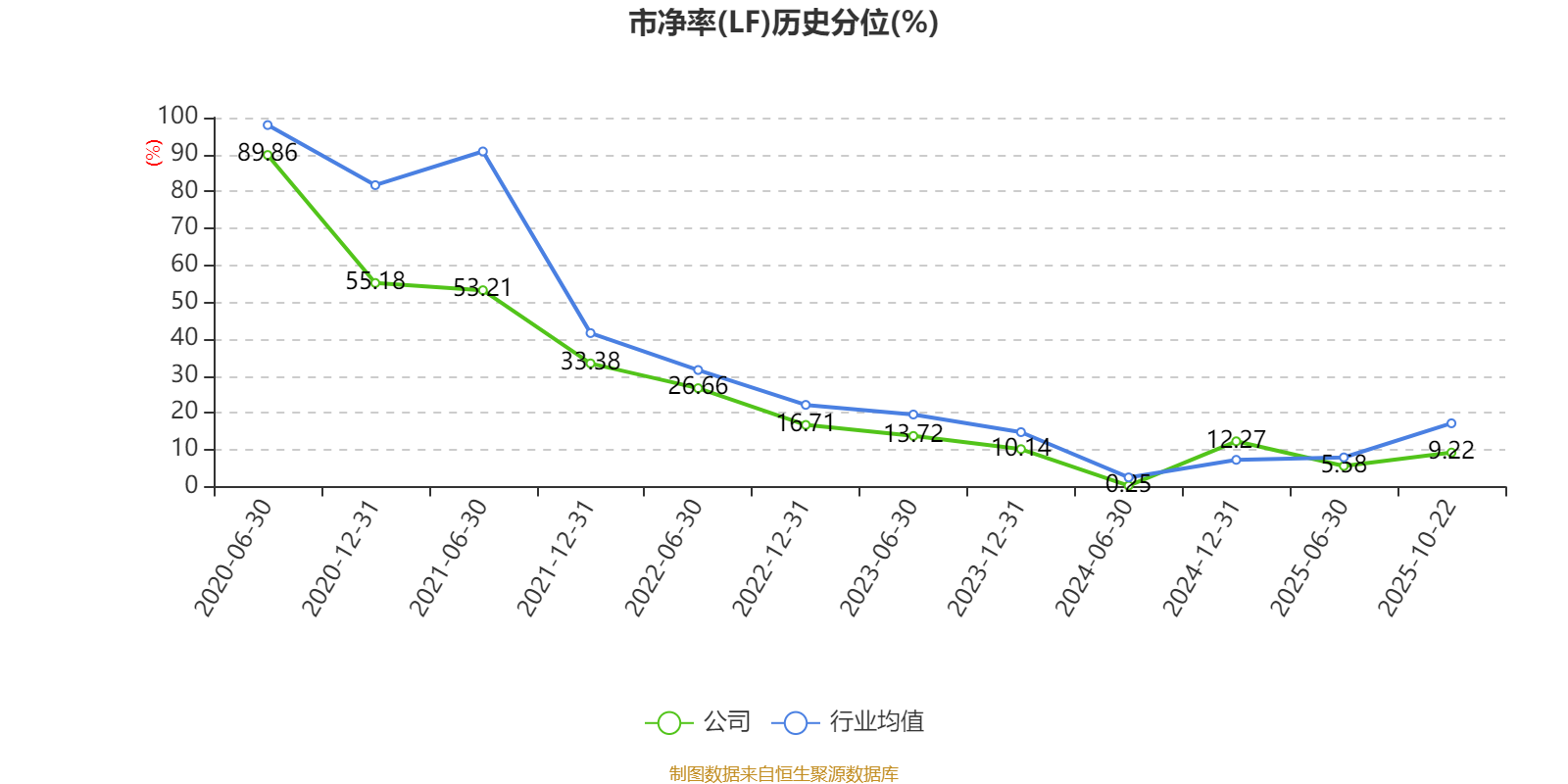 市盈率、市净率为负时,不显示当期分位数,会导致折线图中断。