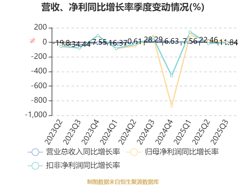 资产重大变化方面,截至2025年三季度末,公司交易性金融资产合计较上年末增加15.99%,占公司总资产比重上升3.78个百分点;货币资金较上年末减少16.3%,占公司总资产比重下降1.91个百分点;存货较上年末减少11.39%,占公司总资产比重下降1.38个百分点;长期待摊费用较上年末增加40.66%,占公司总资产比重上升0.55个百分点。