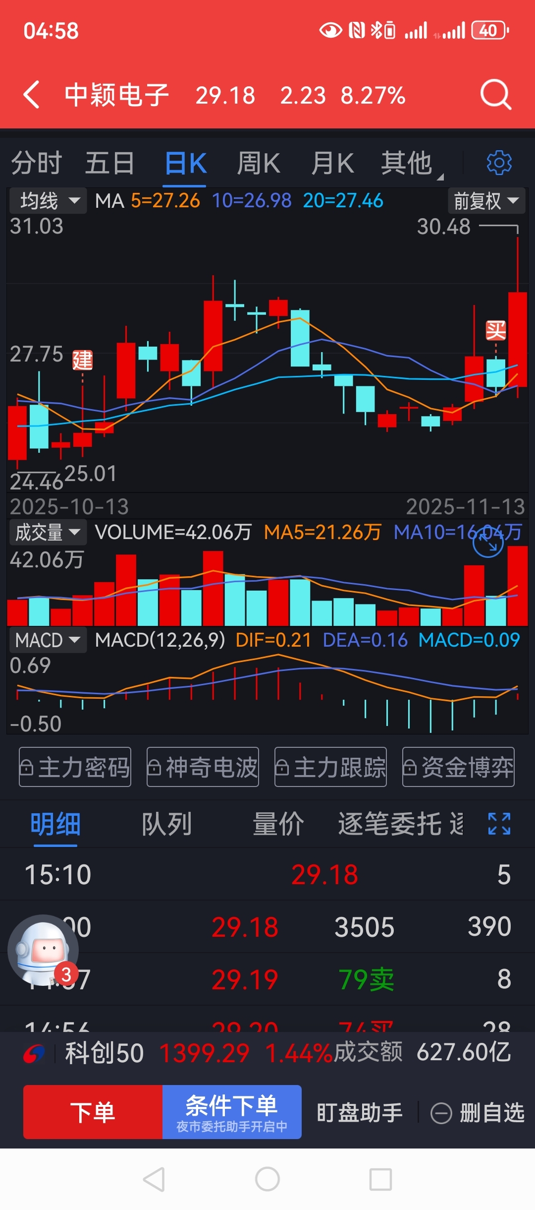 $中颖电子(SZ300327)$ 今天把昨天加仓的卖了。剩下的继续持有。