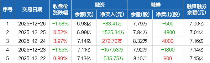中颖电子:融资净偿还83.41万元,融资余额6.98亿元(12-26)