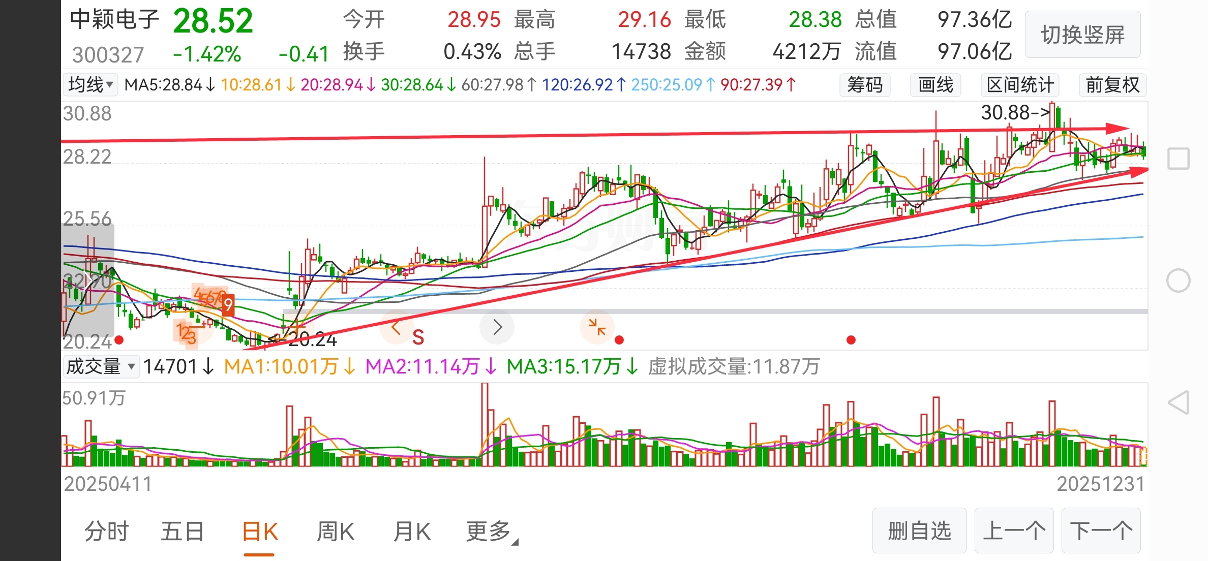 还记得这张图吗?还记得我说的如果站不上29.12的中位线,会继续回踩通通下轨吗?趋势票就是这样的,不要急,也别过于担心。,天蹋不下来。时间窗口没到,就是如此折腾人的。。