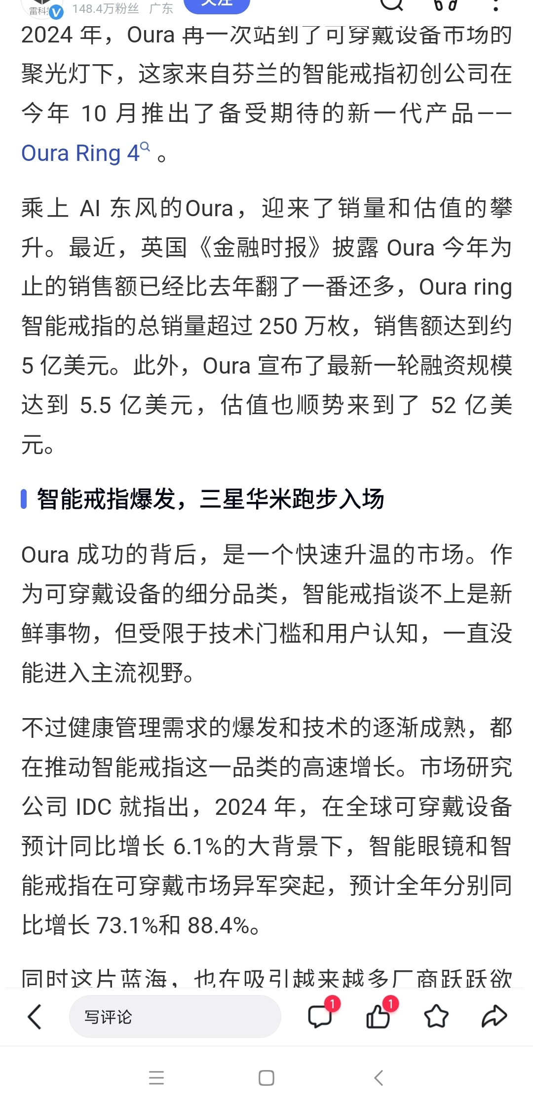 Oura智能戒指被宜安科技拿下这个体量可真是不小