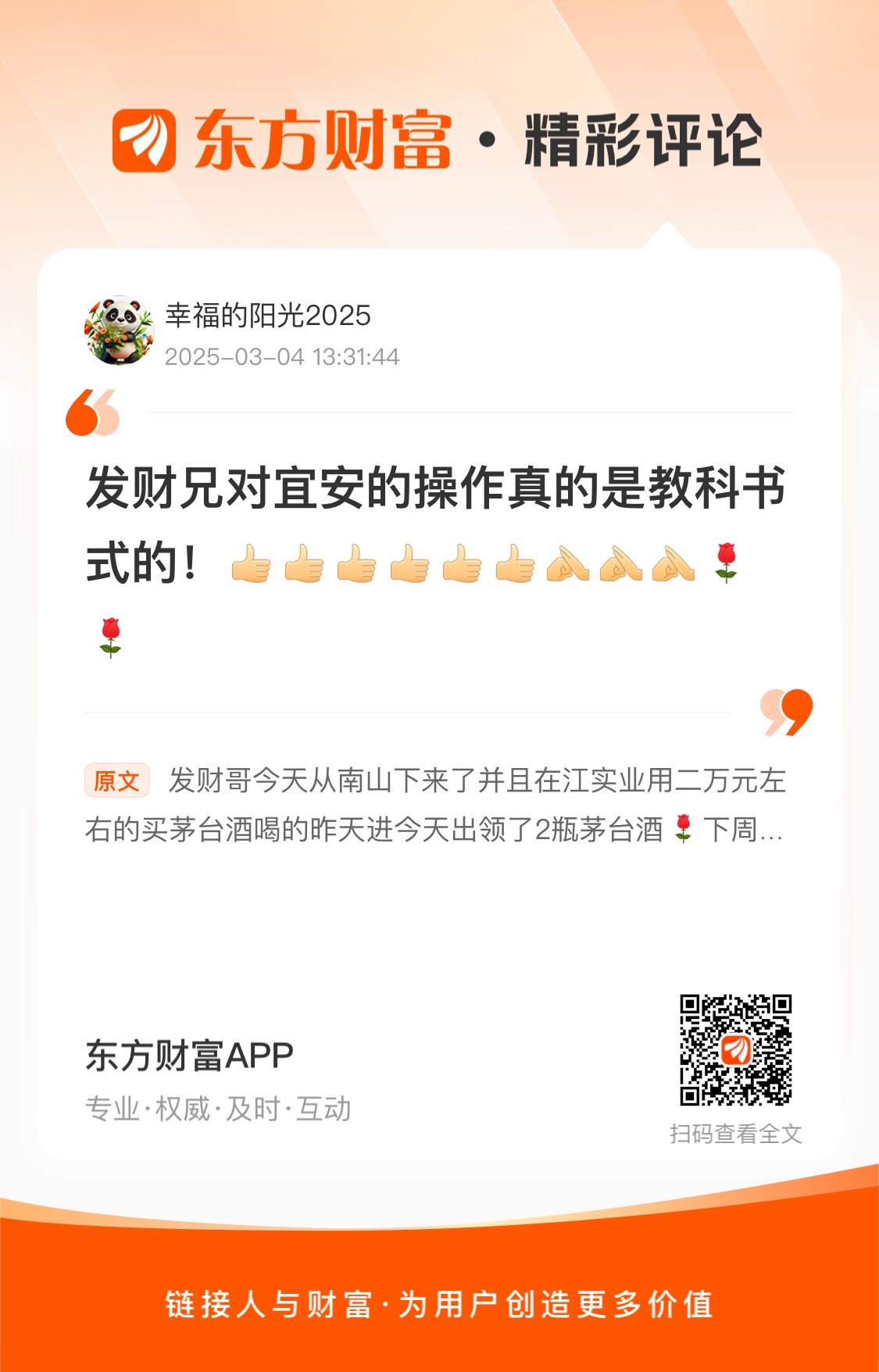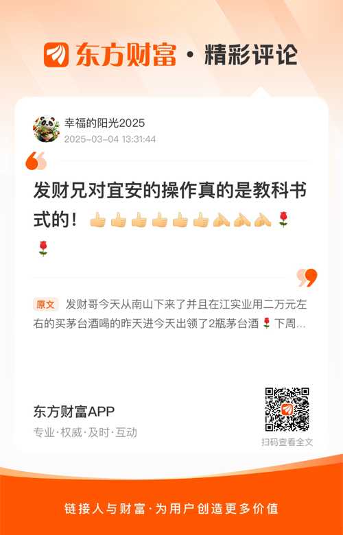 温馨提示: 1.根据《证券法》规定,禁止编造、传播虚假信息或者误导性信息,扰乱证券市场;2.用户在本社区发表的所有资料、言论等仅代表个人观点,与本网站立场无关,不对您构成任何投资建议。用户应基于自己的独立判断,自行决定证券投资并承担相应风险。《东方财富社区管理规定》