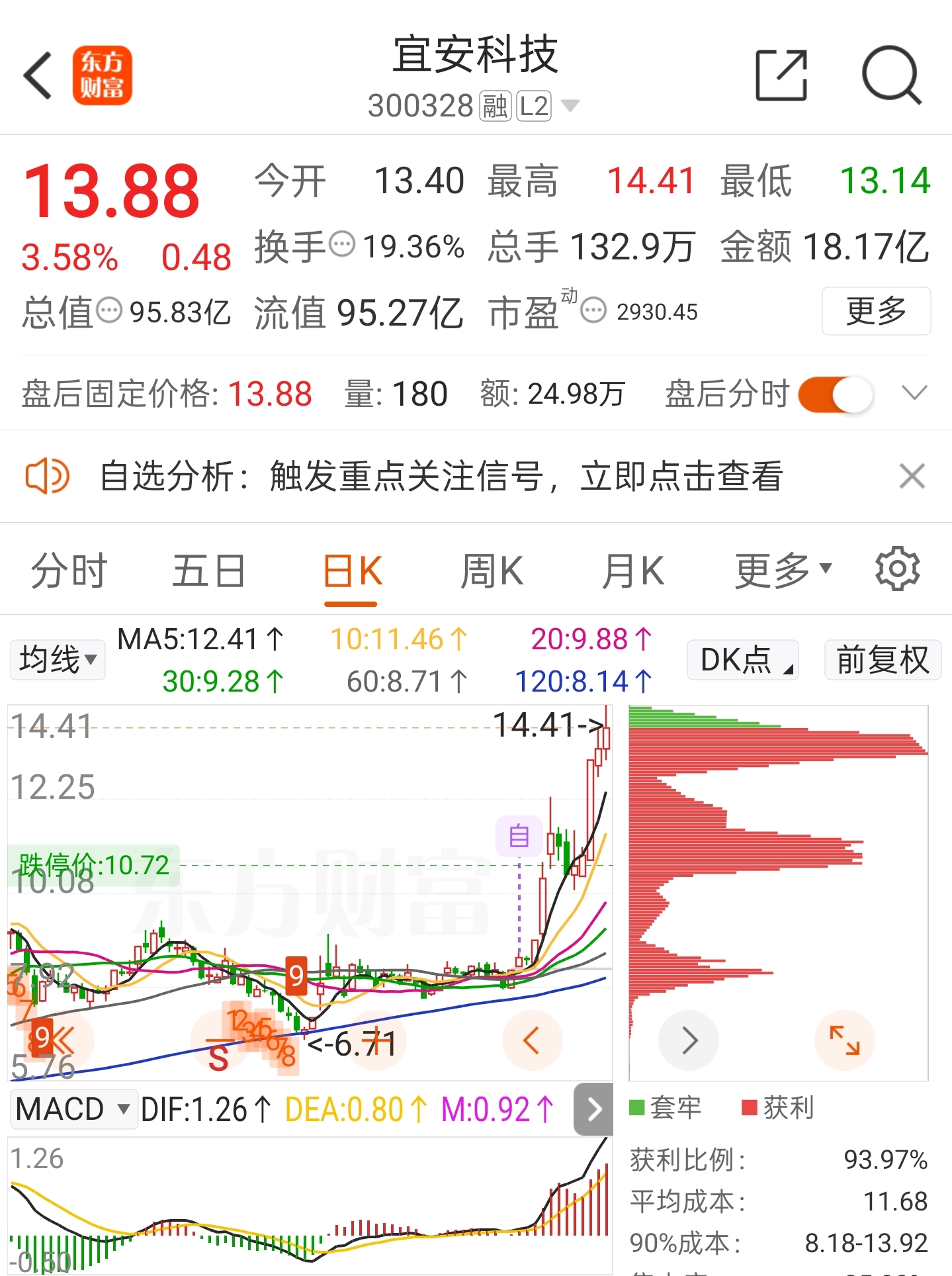 $宜安科技(SZ300328)$ 涨的太快了,刚加入自选,还没来的及入手,结果不敢入了