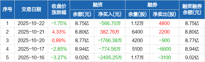 宜安科技:融资净偿还566.7万元,融资余额8.75亿元(10-22)
