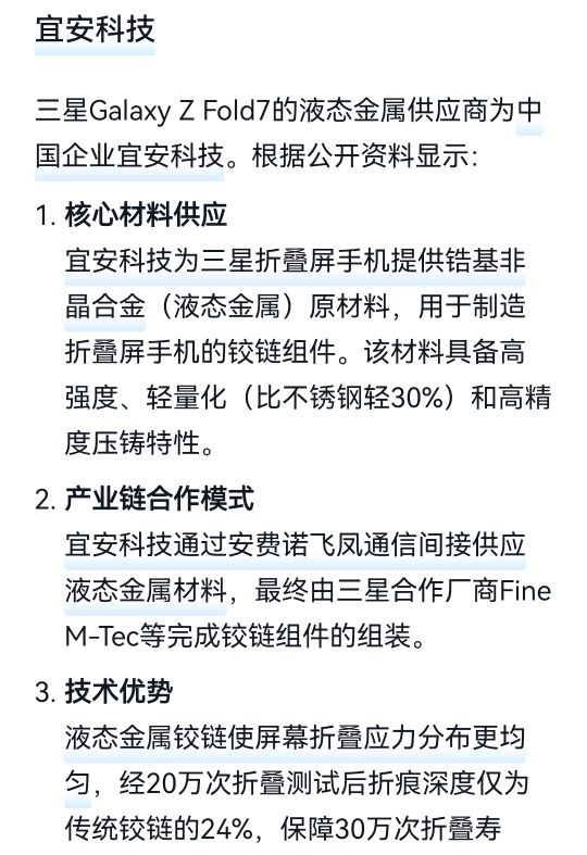 $宜安科技(SZ300328)$ 三星三折叠会不会也用宜安的液态金属
