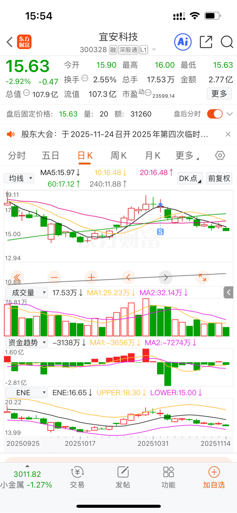 $宜安科技(SZ300328)$ 等!必须出现十字星,必须等到3天不破新低为止,下跌通道不要轻易接盘