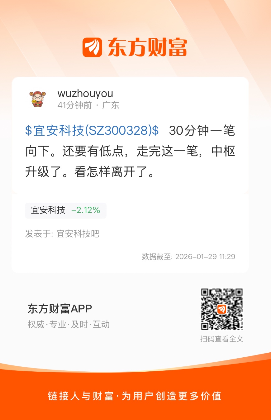 $宜安科技(SZ300328)$  30分钟一笔向下。还要有低点,走完这一笔,中枢升级了。看怎样离开了。