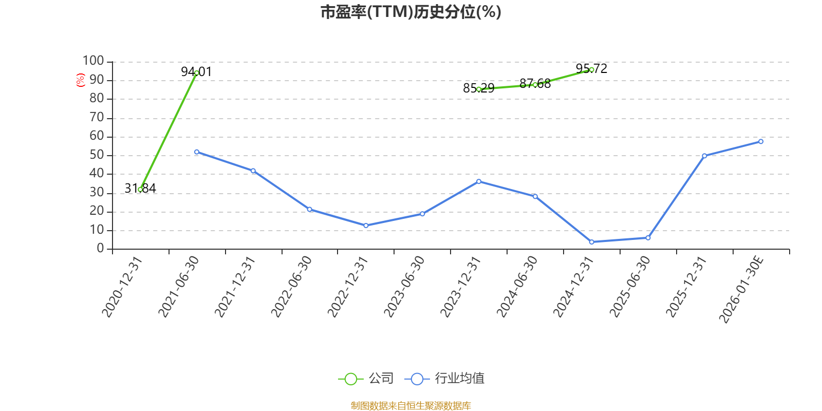 市盈率、市净率为负时,不显示当期分位数,会导致折线图中断。