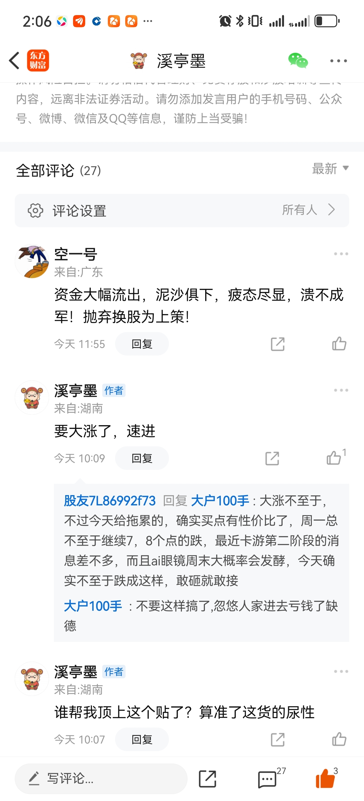 温馨提示: 1.根据《证券法》规定,禁止编造、传播虚假信息或者误导性信息,扰乱证券市场;2.用户在本社区发表的所有资料、言论等仅代表个人观点,与本网站立场无关,不对您构成任何投资建议。用户应基于自己的独立判断,自行决定证券投资并承担相应风险。《东方财富社区管理规定》