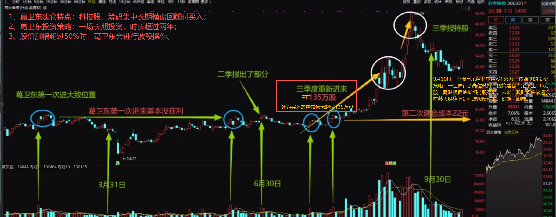 一季报葛卫东持有162万股,二季报十大股东没有(可能没走完,不足87万股),三季报葛卫东持有135万股。列个图大家参考下