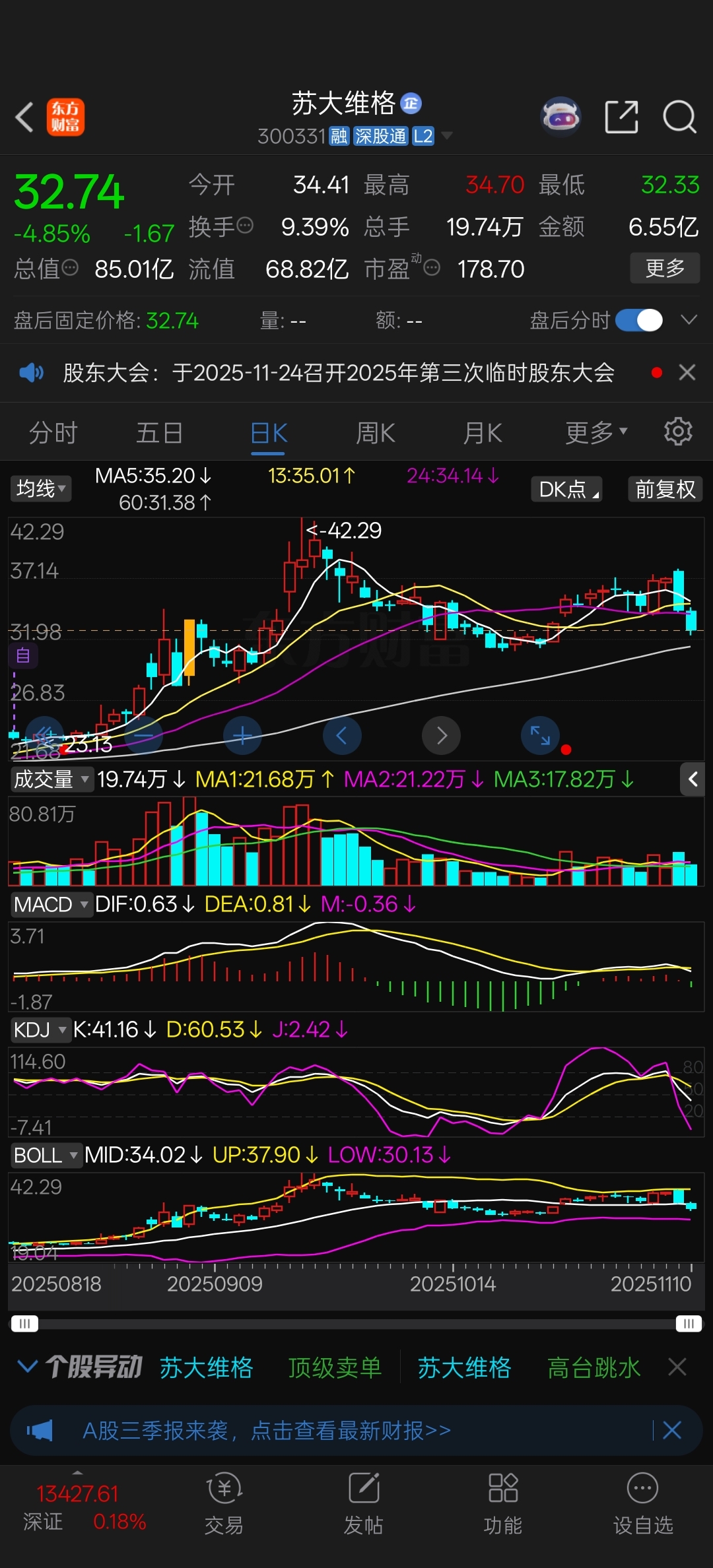 $苏大维格(SZ300331)$ 没有一个技术指标是好的,这波看到28