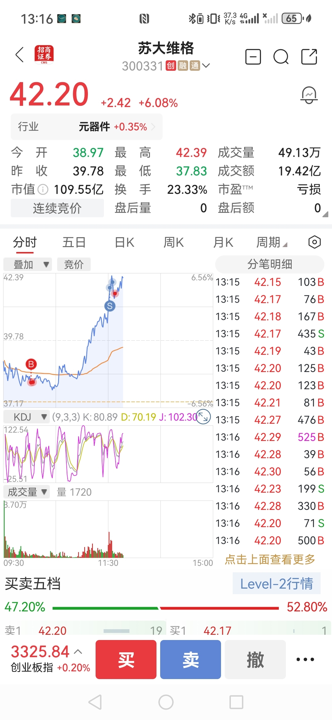$苏大维格(SZ300331)$ 还有三分之一仓位可以卖,等还有一个旗杆再出,43.2左右吧