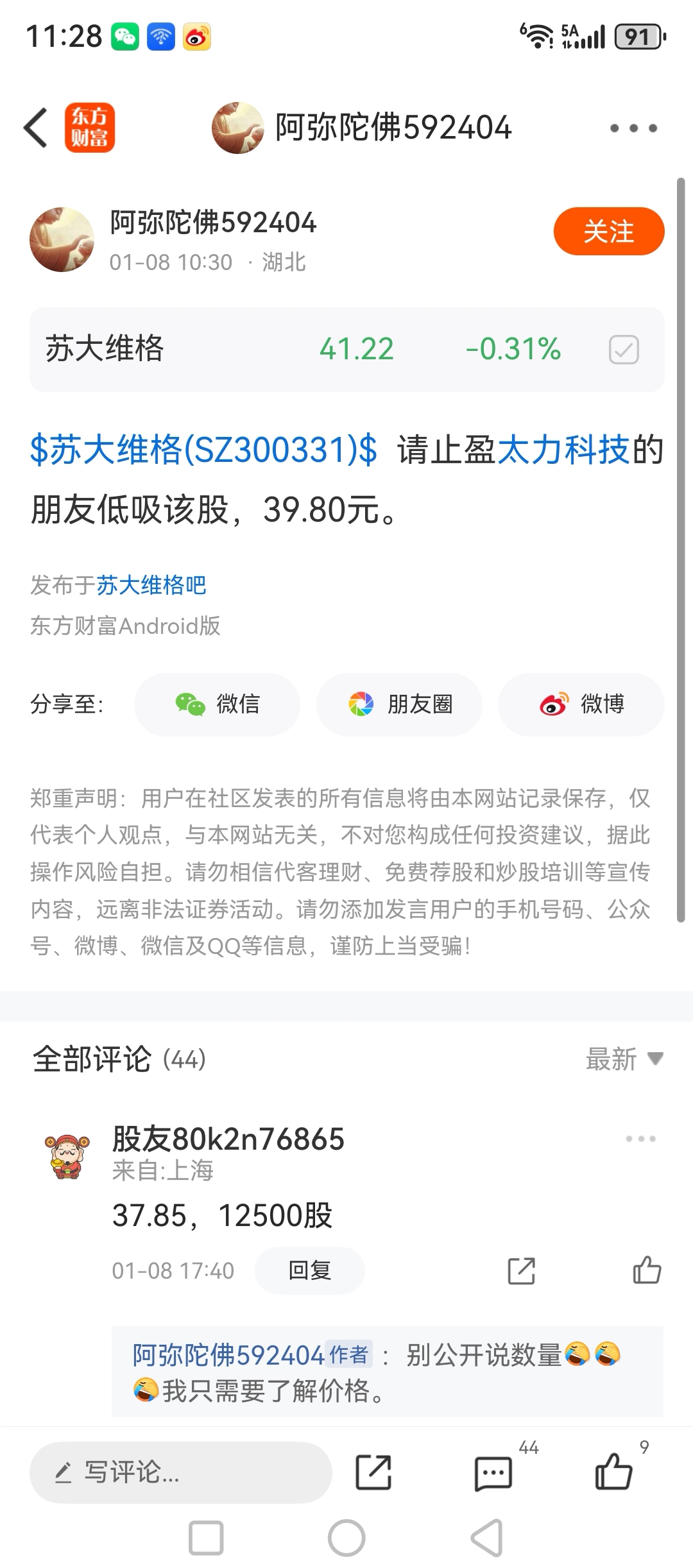 温馨提示: 1.根据《证券法》规定,禁止编造、传播虚假信息或者误导性信息,扰乱证券市场;2.用户在本社区发表的所有资料、言论等仅代表个人观点,与本网站立场无关,不对您构成任何投资建议。用户应基于自己的独立判断,自行决定证券投资并承担相应风险。《东方财富社区管理规定》