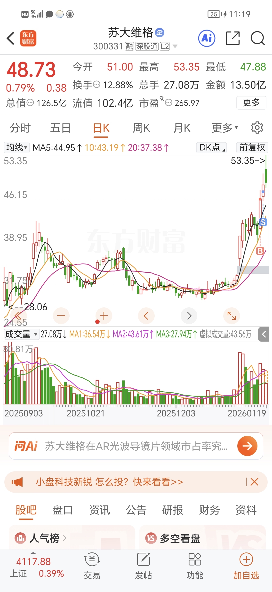 $苏大维格(SZ300331)$ 我什么时候才能把我的票卖在一个均线的位置。这个票买了就挣了3个点,今天早盘卖能挣18个点