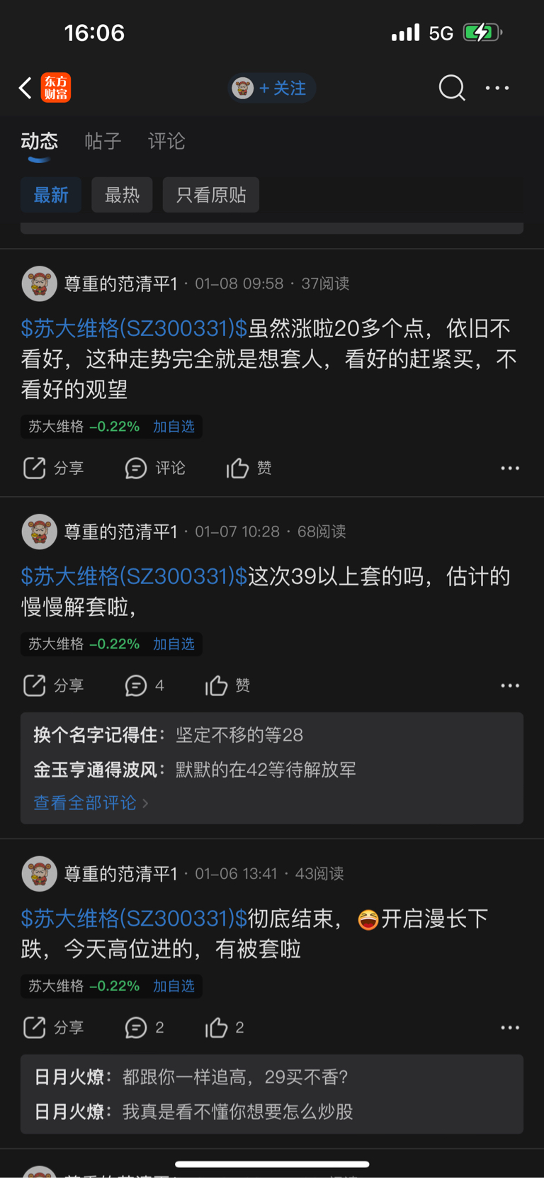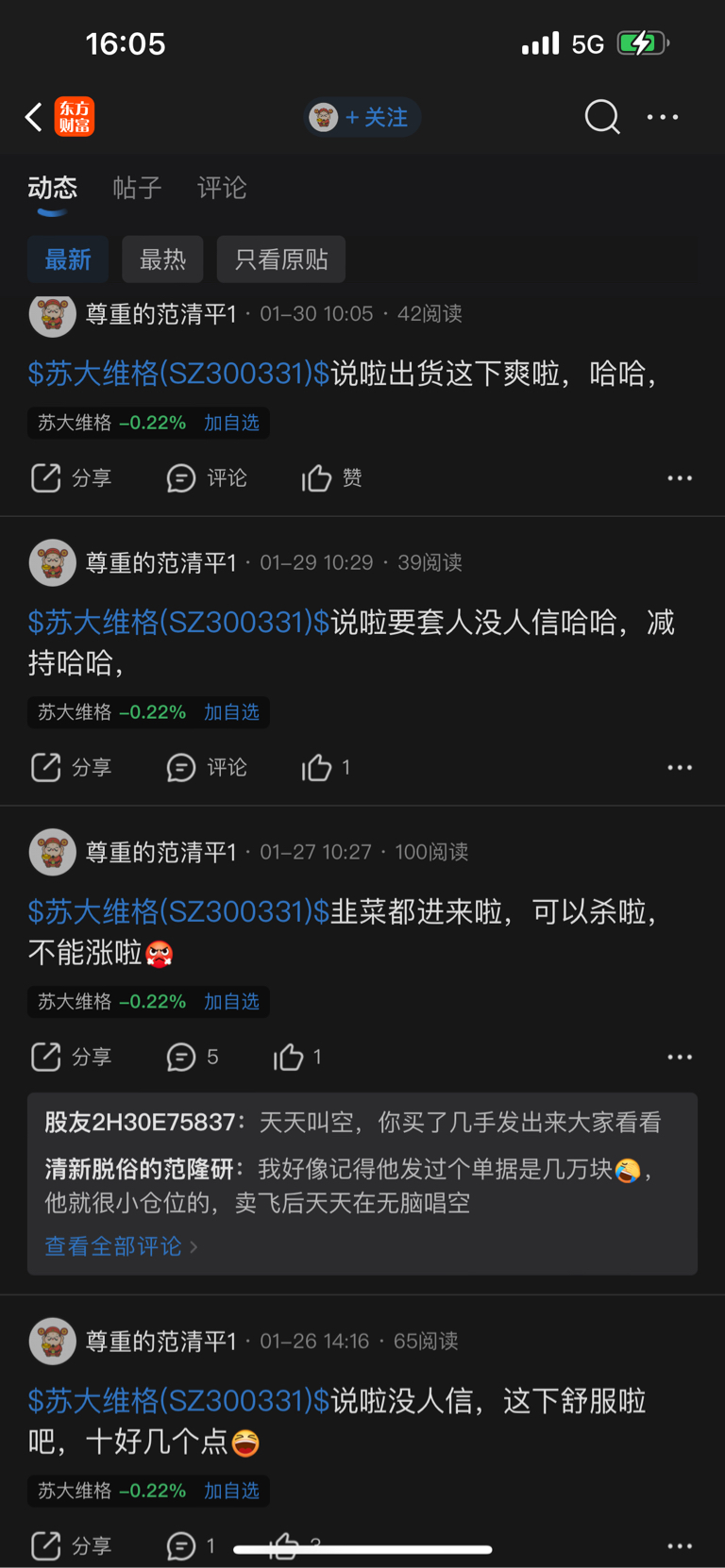 $苏大维格(SZ300331)$ 涨了就说一定会跌,跌了就说看吧我没说错,蹦蹦哒哒的,原来他账户就不到2万块,真的是小人呀,大家和和气气的讨论不好吗?小人得志不会长久的