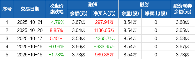 天壕能源:融资净买入297.94万元,融资余额3.67亿元(10-21)