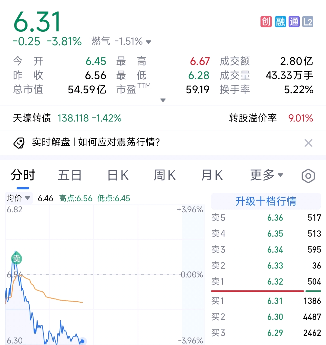 $天壕能源(SZ300332)$ 短期高点,现在就是短期的出货下杀,下杀到底部需要至少七八天吧,然后在慢悠悠回到之前的高点又要七八天,这样一个月就耗没了,所以这两天追高亏了将近5个点,选择离场了,作为短线,我认亏,要是长线选手,这绝对就是底部,看月线就知道了,不过要熬个一两年可能会有百分之五十或者多少的盈利,看月线,这里就是圆弧底,供各位韭菜们参考,我已自割6.57离场