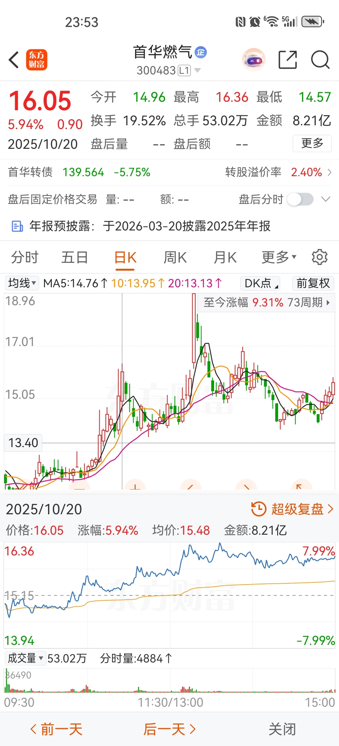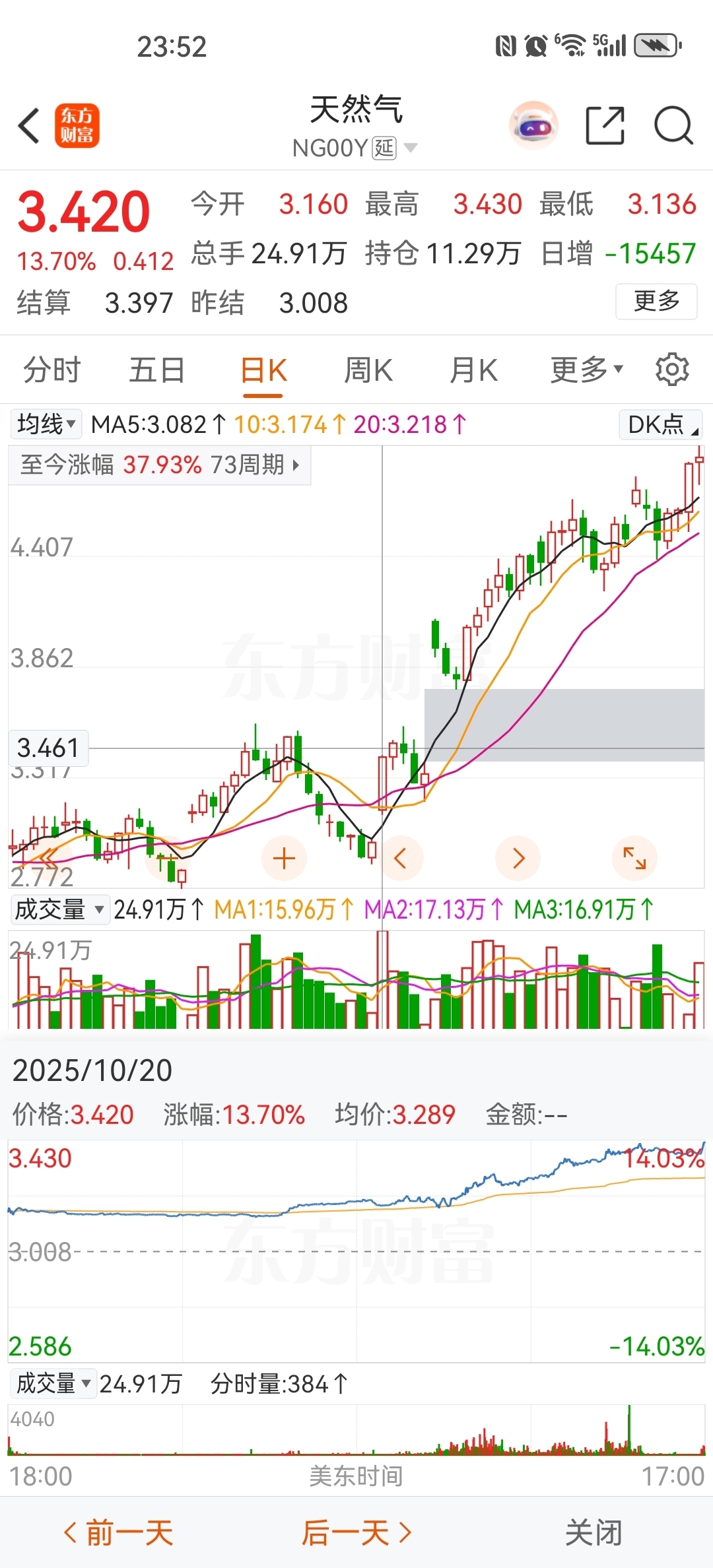 这是10.20日ng的天然气走势这是10.20日比较强的天然气股的走势,周一低开