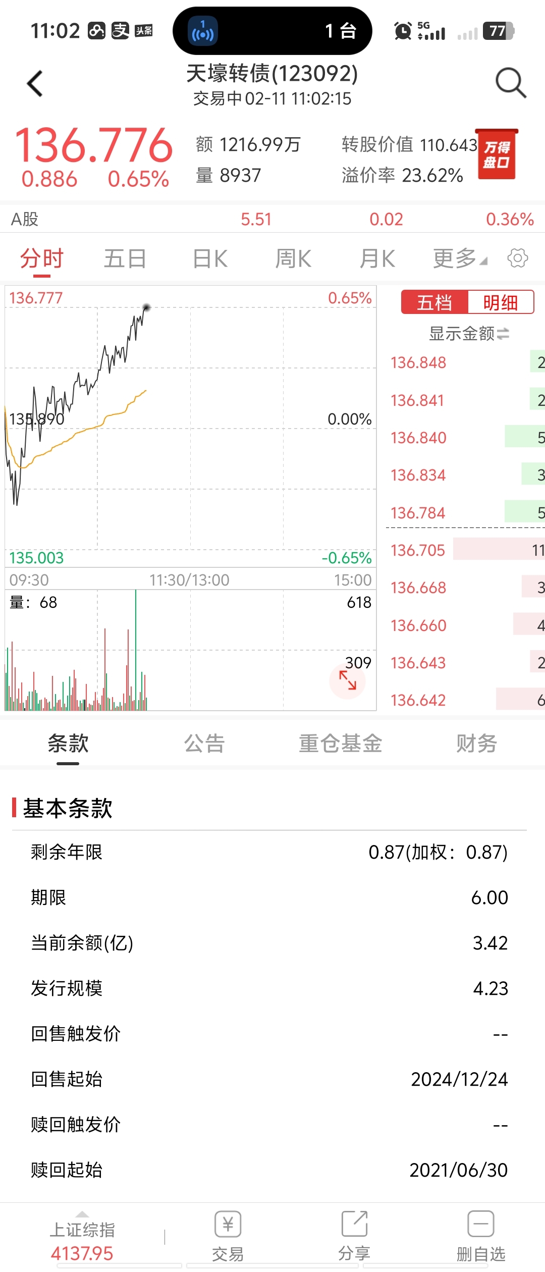 $天壕能源(SZ300332)$ 可转债溢价率23%。说明正股股价超跌23%。正股股价最少要补涨23%才能赶上可转债。主力,你就好好压着,看你能压多久。