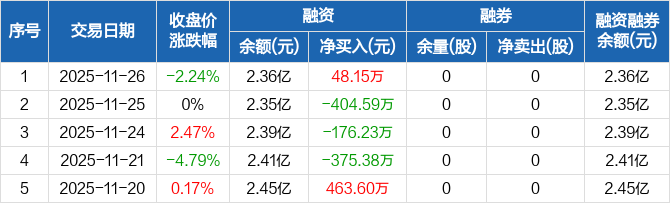 兆日科技:融资净买入48.15万元,融资余额2.36亿元(11-26)