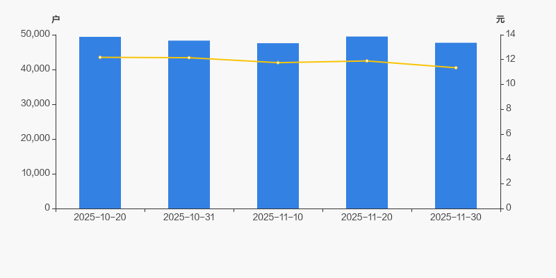 2025年10月20日至今,公司股东户数有所下降,区间跌幅为3.46%。2025年10月20日至2025年11月30日区间股价下降6.90%。