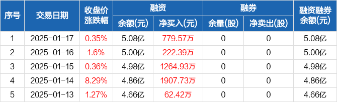 银邦股份:连续5日融资净买入累计4237.05万元(01-17)